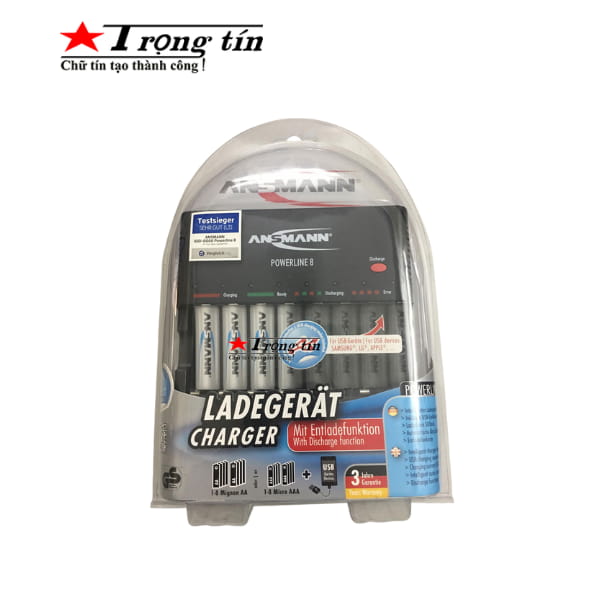 Máy sạc pin Ansmann Powerline 8 chính hãng có thể sạc liền lúc 8 viên pin aa, pin aaa. Máy có 8 khe pin đồng thời có 8 đèn báo pin có thông số giải thích.