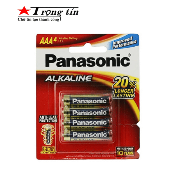 Pin AAA Panasonic Alkaline vỉ 4 là loại pin kiềm chất lượng cao; sử dụng bền hơn các loại pin thông thường gấp nhiều lần. Pin được sử dụng ngày hàng cho các thiết bị như chuột, bàn phím máy tính không dây, máy đĩa, điều khiển điều hoà, máy ảnh số, máy đo huyết áp,…