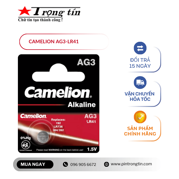 Pin AG3 Camelion là pin Alkaline chất liệu kiềm với khả năng lưu trữ điện tốt. Đảm bảo chi phí cho người sử dụng. Pin AG3 Camelion là dòng pin sử dụng rộng rãi cho các thiết bị như máy tính, đồng hồ, máy đo nhiệt,… kết hợp hài hòa về chất lượng, giá cả. Khi sử dụng pin Camelion bạn có thể yên tâm về chất lượng và độ an toàn của pin so với những loại pin thông thường.