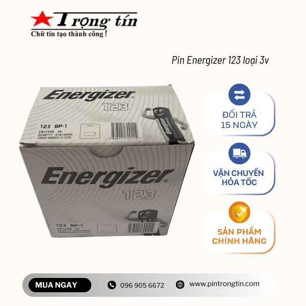Pin CR123A Energizer là loại pin lithium chất lượng cao với thời gian lưu trữ điện vượt trội. Đem đến cho người dùng thời gian sử dụng bền lâu; giảm chi phí pin được sử dụng trong máy ảnh, gậy chơi gold, ống nhòm…
