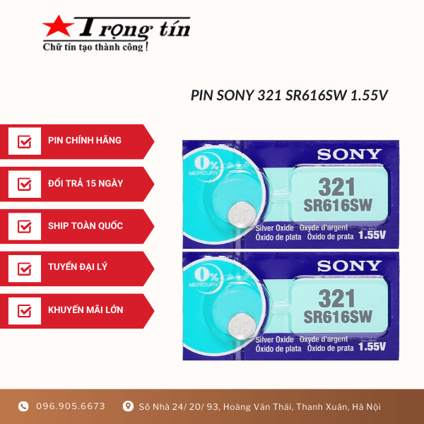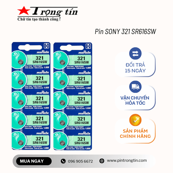 Pin đồng hồ Sony SR616SW hàng chính hãng chất lượng cao tại Pin Trọng Tín. Pin chuyên dành cho pin đồng hồ đeo tay, đồng hồ cao cấp…