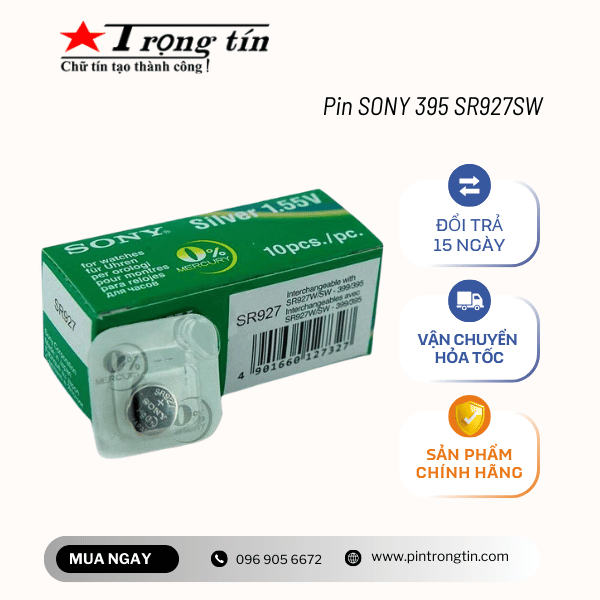 Pin đồng hồ Sony SR927SW hay còn gọi là pin 395 chuyên sử dụng thay cho đồng hồ đeo tay. Chất liệu oxit bạc cao cấp giúp đảm bảo cho thiết bị sử dụng không bị hư hỏng.