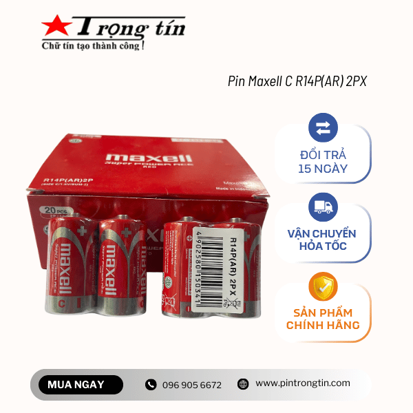 Pin Trung Maxell Super R14P (AR) pin được sử dụng trong hệ thống bếp ga, đèn pin, đồng hồ, đồ chơi… đã khẳng định trên từng mỗi viên pin Maxell. Thời gian lưu trữ điện lên đến 3 năm với giá thành hợp lý chất lượng đảm bảo. Maxell là những tập đoàn lớn đã đem đến Việt Nam với nhiều sản phẩm đã khẳng định được vị trí thương hiệu trên thị trường.