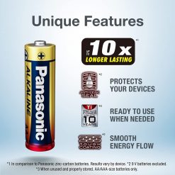 Với công nghệ sản xuất hiện pin đại Panasonic Alkaline đại có thể lưu trữ điện năng nhiều và cho thời gian sử dụng lâu hơn các loại pin thông thường.