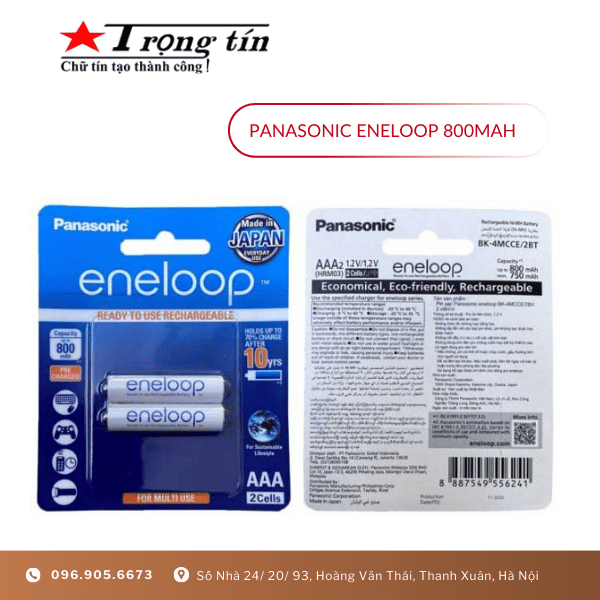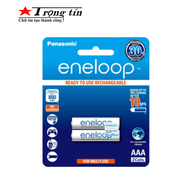 Pin sạc Eneloop AAA 800mAh (hay còn gọi là pin sạc panasonic AAA). Nói đến pin Eneloop mọi người thường nghĩ đến dòng pin sạc. Vì thời gian sử dụng của nó thật là vượt trội cho thời gian sử dụng lâu. Dòng pin này chuyên sử dụng cho máy ảnh, hay các thiết bị dùng nguồn năng lượng lớn.