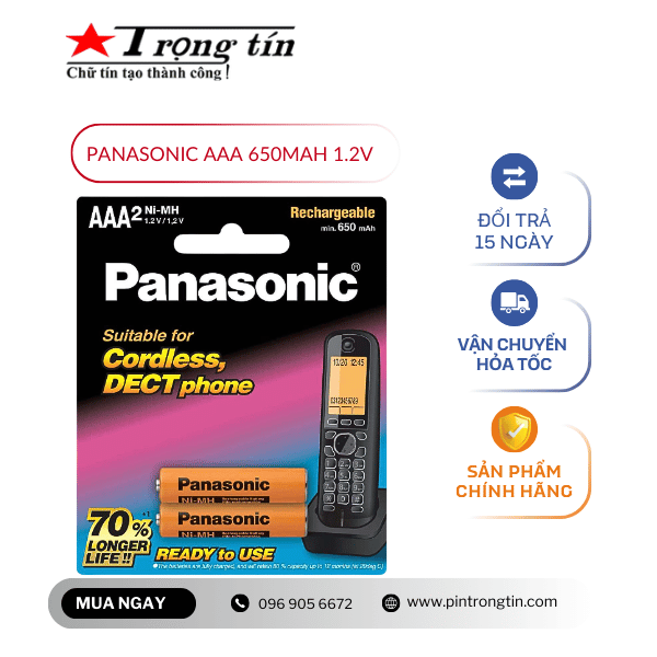 Pin Sạc AAA Panasonic dùng cho các dòng điện thoại không dây và các dòng điện thoại hiển thị màn hình.